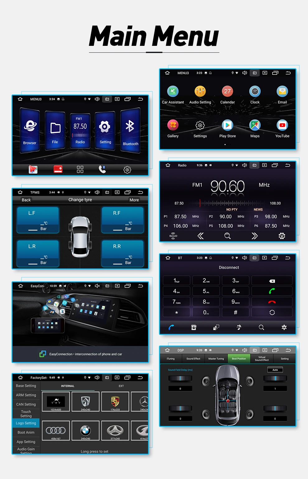 Android 9.0 Special For Ford Focus 2004-2011 9' 2.5D IPS Screen,Android 9.0 Car Radio, With DSP, RDS And Support TPMS, DAB+(only Euro country have the signal),RAM+ROM:2G+16G Unimaginable!!! It has three MENUs for you to change in the radio. Software Feature Operating System: Android 9.0 Display size: 9/10 inch CPU: 1.2Ghz Quad-core Aduio Chip: The Newest TDA 7851L Radio Chip:7786 Input Power: 4*60W RAM: 2GB ROM: 16GB Resolution: 1024*600 Screen: 9inch/10inch 2.5D IPS Special Function: DSP,RDS, Split Screen Support :TPMS,DAB+ WiFi :Support USB Slots:Support GPS:Support Video out :Support 1.GPS function,The Android radio supports virtually all applications with maps (Yandex maps, Google maps, IGO map etc). You can download your favorite application via Google play, also you can download map from phone then install USB for offline GPS. 2. The Screen is 2.5D IPS full touch Screen,Higher resolution andSmoother 3. DSP Function,Excellent sound quality with more customerized options, to provide you with a much better experience. 4.Split Screen, Two function can work at the same time and show together, pay attention to, that some third-party apps do not support to work under split screen feature. 5. Support the DAB+,At present only Euro country have the DAB Signal 6.Support the TPMS, you can use the TPMS sensor connect the radio, and install the TPMS APP, the Radio would show the TPMS message,It's reallyConvenience,but the TPMS need you choose,maybe you can click the picture to choose. 7.The Aduio chip is the Newest TAD 7851L,Multiple customization options let you adapt the audio experience to your likeing.And with the built-in 4 x55w amplification,music sounds clear even at high volumes,Powerful,clear amplification. 8.Support the rear view camera ,When the car in Reverse Gear, this car DVD will automatically switch to the back-up camera image view with parking line. if you want the rear view camera, pls click this picture to check it . 9.Support USB DVR,Once setup, this feature can capture events that occur while driving, providing safety features, such as collision footage. also you can clickthis picture to check the DVR 10.Bluetooth function,supportthe phone call, the music, the voice by Bluetooth,Connect your smart phone by Bluetooth function,you could make and receive calls directly from the car DVDitself with the built-in MIC and speaker. Make your hand free for safe driving. 11.Support Mirror link.You can connect the iPhones and android phones by your Phone such an GPS navigation, music,play games,videos. Makes connected driving easier, safer and more enjoyable. For Android phones, it can connect and control the device by USB and Wifi, For iphone, can connect by wifi. 12.Support steering wheel control,compatible with most of the steering wheel control functions. Easy to switch songs,channels and adjust volume, also for handfree bluetooth phone to provide you a safer and more enjoyable journey. 13.Bulid your own sound.And with the built-in 4*45 W amplification, music sounds clear even at high volumes. Tailor the sound to your personal preference with the 9-band graphic equalizer. Pop, Rock, Jazz, Classical, Flat, User, Voice. Multiple customization option's let you adapt the audio experience to your like. 14.Multimedia Player,1024*600 screen resolution, support HD 1080P video display. Build-in Wi-Fito enjoy online music and videos. Support display by USB and SD Card. Support Media Format:JPEG,DVD-R/RW,CD,WMA,MP3,DVD-RAM,Mp4,ect. 15.FM Function, also support the RDS 16.Support the OBD2, Diagnose your car statueanytime, and just need you download the OBD2 apk in the radio, and if you need the OBD2, pls click the following picture to choose. 17.Support WIFI,you can use the radio connect your phone's hot spotor other Wi-Fi, then you can download any apps you want, and Easy access to network. 18.Support Multi-Languages,there only part of the languages in the radio, 19.Main Menu It support a lot of car model logo as Boot Logo, maybe you can check it, there onlydisplayedpart of the logoin the radio. 20.Efficient Heat Dissipation.The device with itselfficiant heat dissipation will keep running in a stable manner and still allow smooth operation even if your cars temp reaches up to 70℃.Exhaust the heat via the double aluminum heat sink 21.Perfect tear apart protective film methods 1.Please use the blade to find the protective film 2.Tear protective film 3.Perfect HD Big screen 22.Product appearance and the cable connection, the rear camera connection. 23.The price including all the Wires as below: Universal power wires: 1 piece Speical Power Cable For Ford Focus: 1 piece RCA wire:1 piece Rear camera Wires:1 piece GPS wires: 1 piece USB wires: 1 pieces The syetem for the navigation:pure and real Android 9.0 Unlike most car receivers, we have takes 9 inch 2.5D IPS screen instead of 8 inch. The monitor is even bigger, the picture is even clearer Product Detail Our work time is 9:00-18:00 Monday-Friday(Beijing time), so if we dont reply you, because our time is different,when we saw it, we would reply you right soon, thank you first. Other Android Radio If you interesting in, maybe you can click the following picture to check it ClickThis Picture To Follow Our Store, And Get The Installation Tool As A Gift !!!