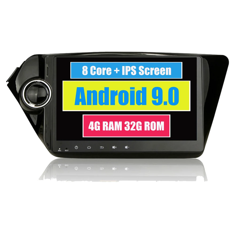 Android 9.0 Octa Core Car Multimedia System for Kia Rio K2 2011+ Replace Original Radio CD / DVDPlayer, Not Fit The Car with Factory Navigation. CPU: Rockchip PX5 Octa-Core, 64-Bit Coretex A53 OS: Latest android 9.0 Oreo RAM: DDR3 4GB; ROM: 32GB Superior Amplifier Chip: TDA7850 (4*50W Max) Radio Chip: NXP 6686, Low IF Tuner, High Performance Screen: IPS Screen; Resolution: HD 1024*600 Bluetooth: Hands-Free Profile &Audio Profile (A2DP); Free 1.5m Microphone Variable Key Illumination, All RGB colors Fast Boot time(2nd time): about 3s; Cold Boot time: about 20-25s